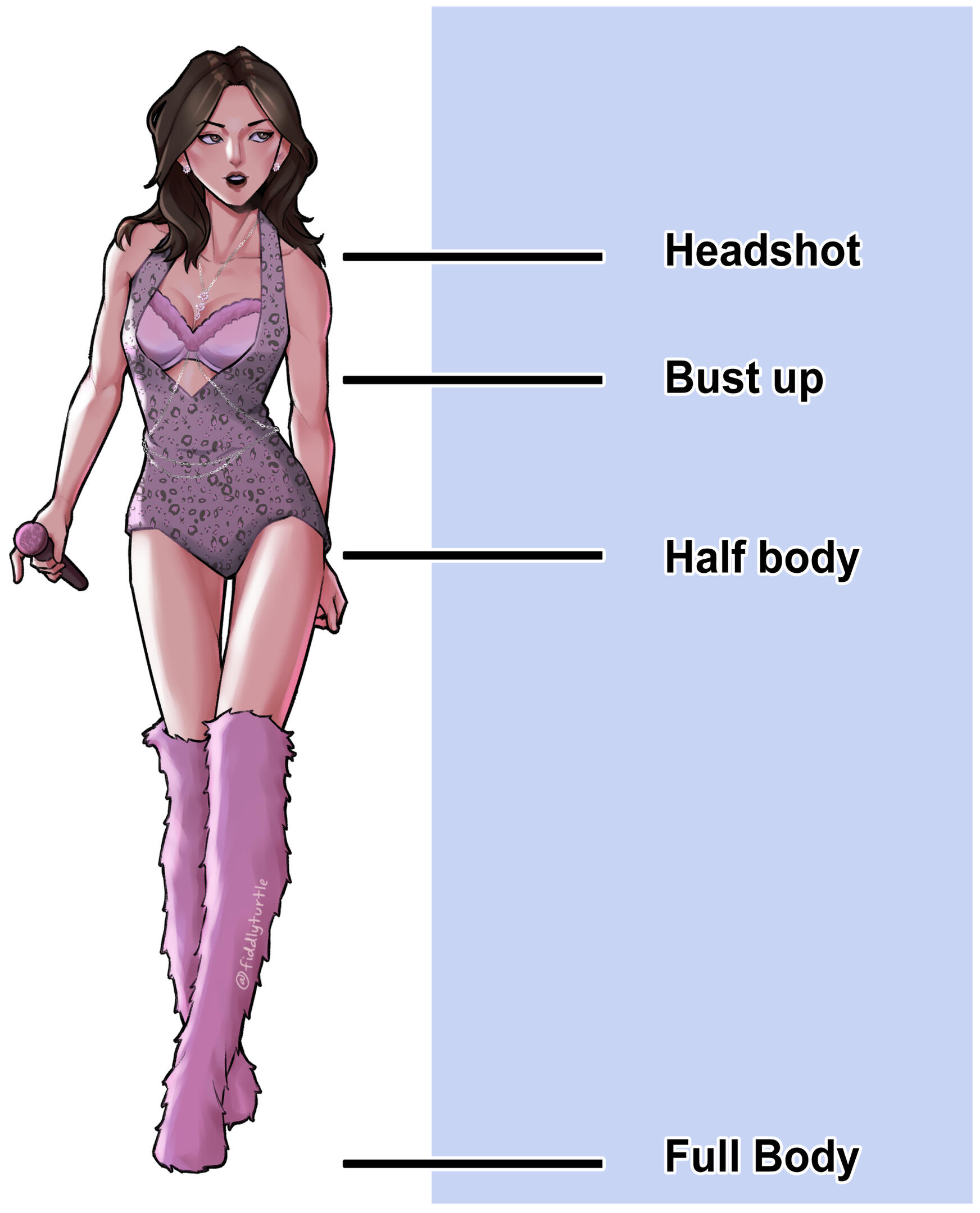 full body - $65+Additional cost for complex designs/props ($5 - $15)+70% for additional characterBackground options:-